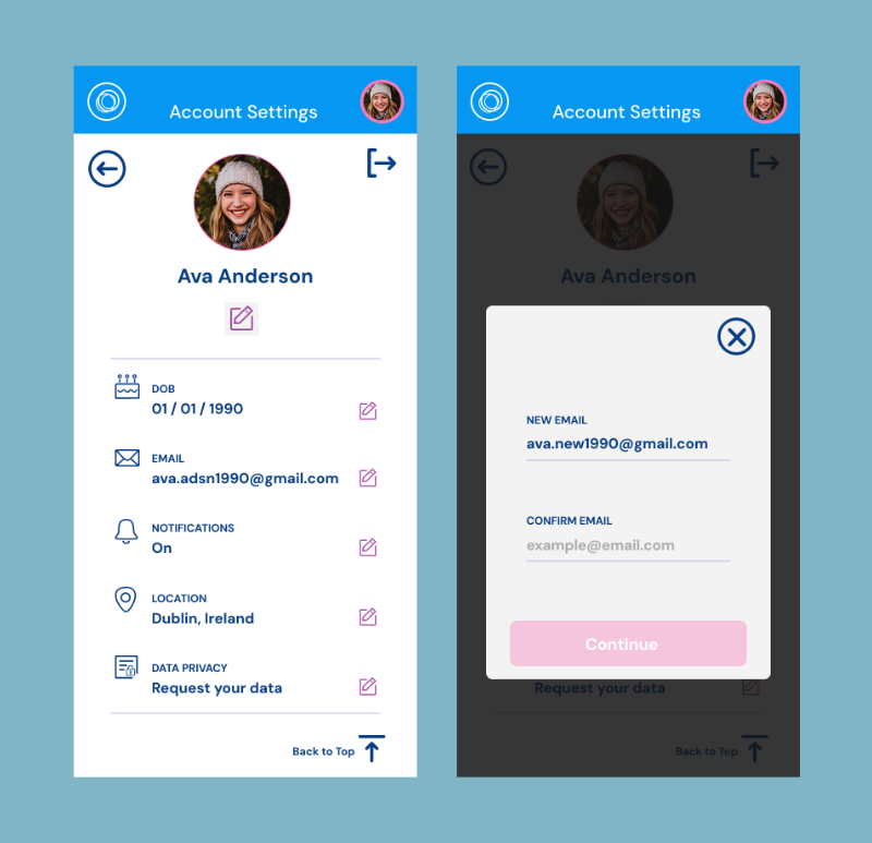 Minimal, purposeful colour: Inspired by more identifiable health apps, we used blocks of colour sparingly to highlight key actions and reinforce brand identity, keeping the interface clean and focussed.