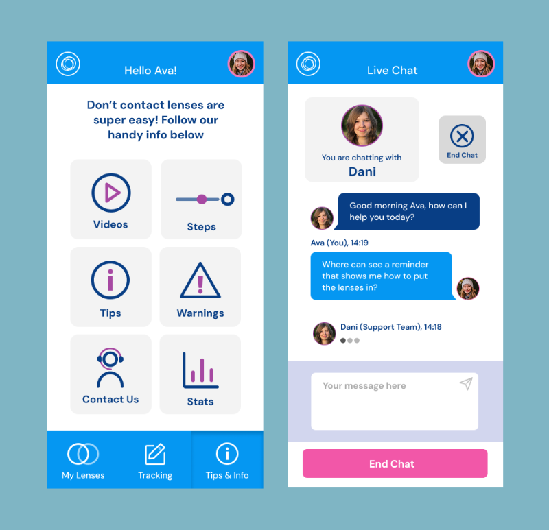 Disclaimer: This fictional demo was created for portfolio purposes, based on publicly available information about contact lenses, an existing medical technology, and user behaviours.